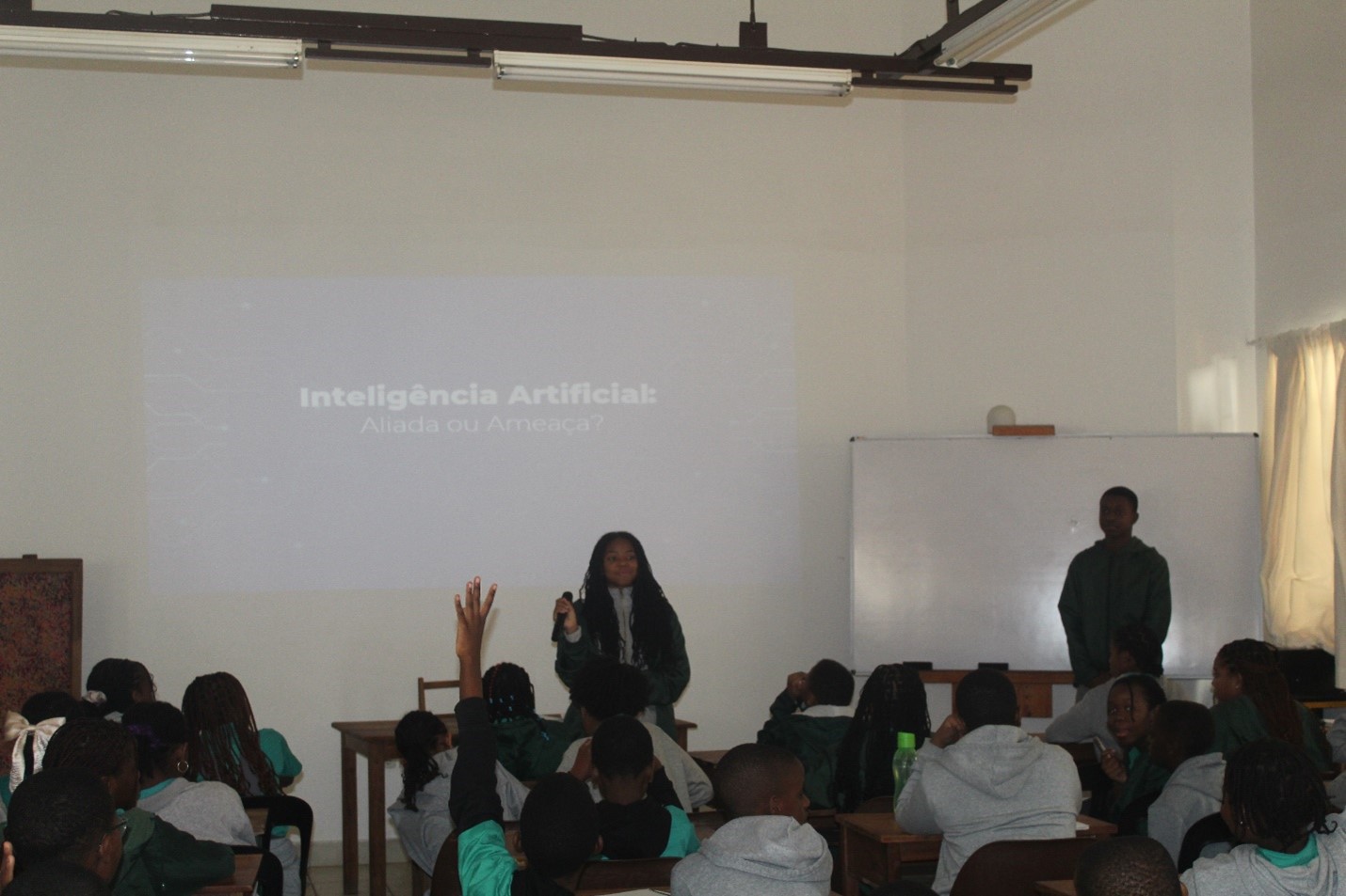 Paralelamente à exposição, decorreu um ciclo de palestras com o mesmo tema, dirigido às classes do primeiro ciclo. As sessões foram dinamizadas por quatro alunos – Kawanga André, Wagner Manhique, Camilo Ramos e Issufo Júnior – com o apoio dos professores da disciplina. As palestras destacaram-se pelo carácter participativo e pela abordagem acessível, promovendo a reflexão crítica entre os mais novos sobre os desafios e oportunidades da IA.